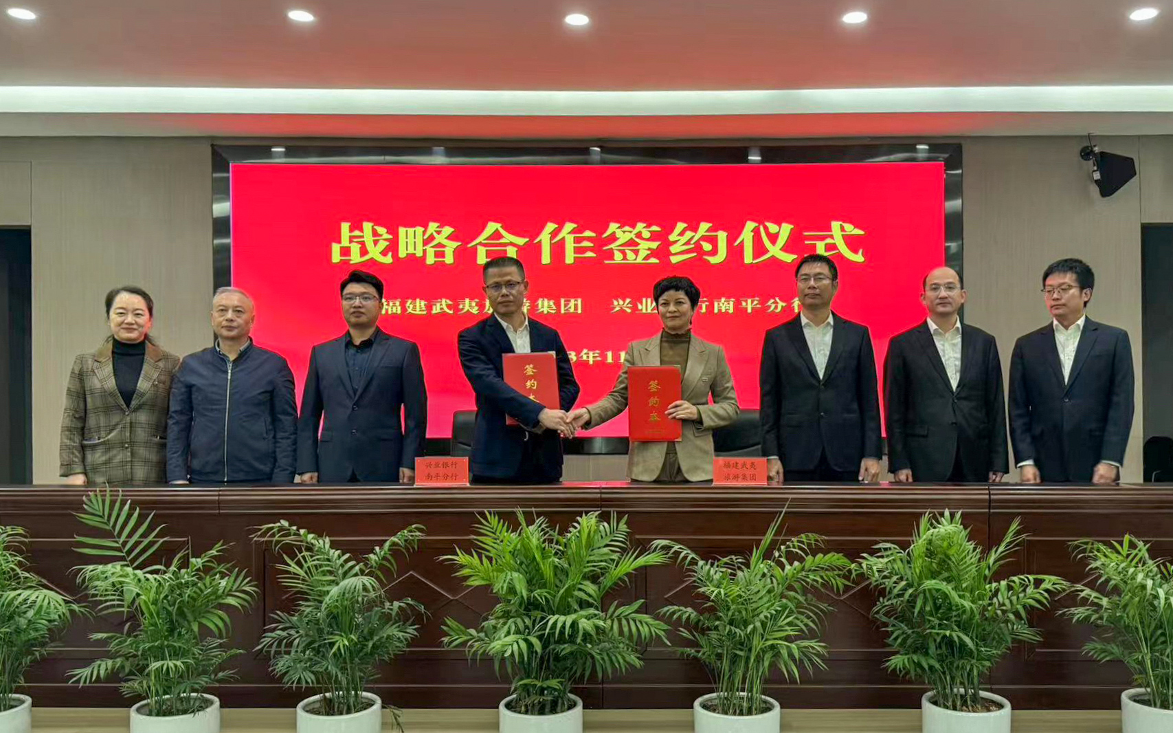 11月14日,18av 与兴业银行南平分行签署战略合作协议。集团党委书记、董事长叶厚德,兴业银行南平分行行长蔡明华出席并见证签约,集团总经理许周妹、兴业银行