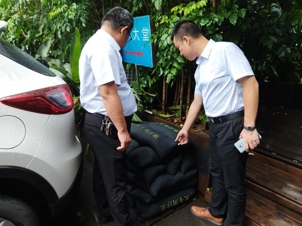 闽越公司组织在建项目和出租房产隐患排查,对顶楼水塔、地下室防积水和排水系统等进行检查,要求施工方暂停施工,备好防涝物资和安排值守人员,通知负层租户做好防涝准备工作。