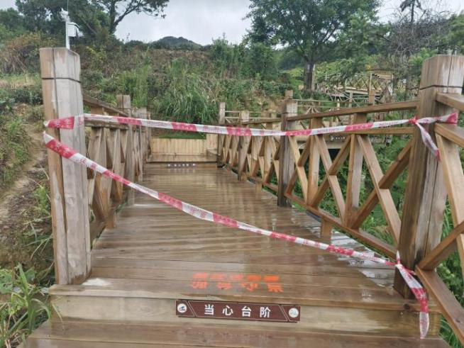 琅嬛公司组织佛子山景区游步道项目、外屯游客服务中心防台防汛安全排查,加强对高陡边坡等重点部位巡查、拉好警戒线等。