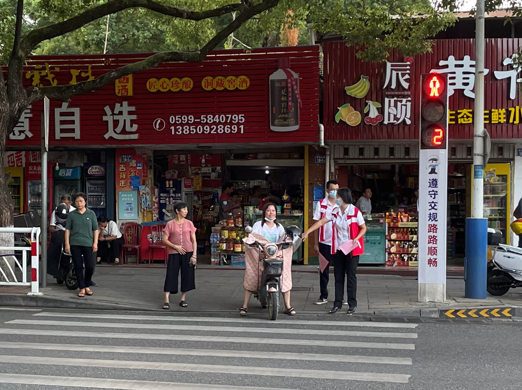 党员志愿者们身着红色马甲,向来往行人发放《珍爱生命 文明出行》宣传单,在路口、斑马线前,引导车辆、行人安全文明通行,对摩托车驾驶员未戴安全头盔、闯红灯、不按道行驶等违法行为进行劝导,制止非机动车乱穿乱行等行为,对老人、儿童等过马路提供帮助,以实际行动倡导文明新风尚。通过交通文明劝导志愿服务活动,充分发挥党员先锋模范作用,促进群众养成良好的出行习惯,保护自身生命安全,进一步增强广大居民朋友的交通安全意识,为党的二十大胜利召开营造安全畅通、文明和谐的道路交通环境。