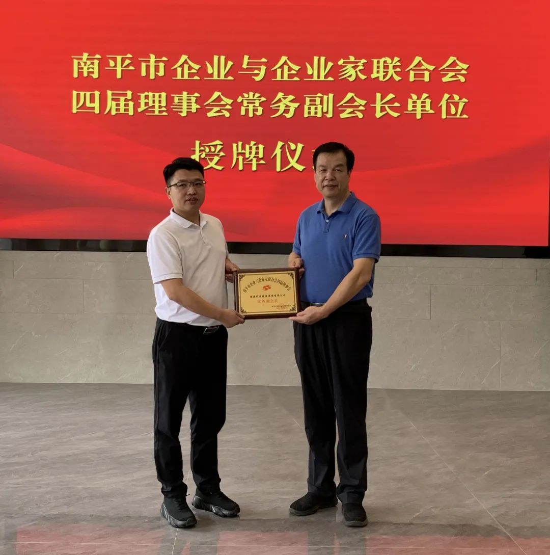 8月29日,南平市企业与企业家联合会会长梁廉荣一行到18av 走访,为集团颁授“南平市企业与企业家联合会四届理事会常务副会长单位”牌匾。
