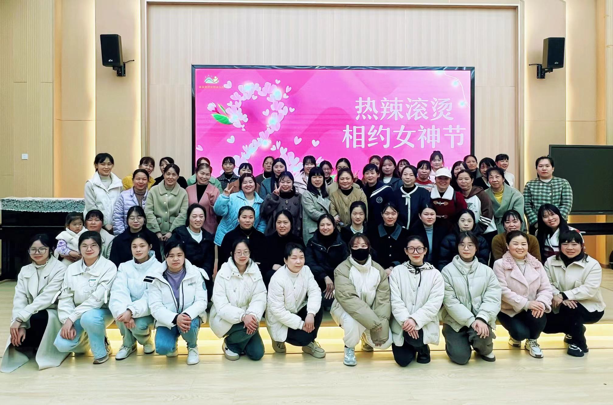 幼儿园举办“热辣滚烫,动起来”妇女节主题活动。女职工们参与拔河、投篮等趣味竞赛,锻炼身体,展现团队风采。活动尾声,幼儿园贴心地为每位女职工送上了鲜花,表达对她们辛勤工作的感激与祝福。