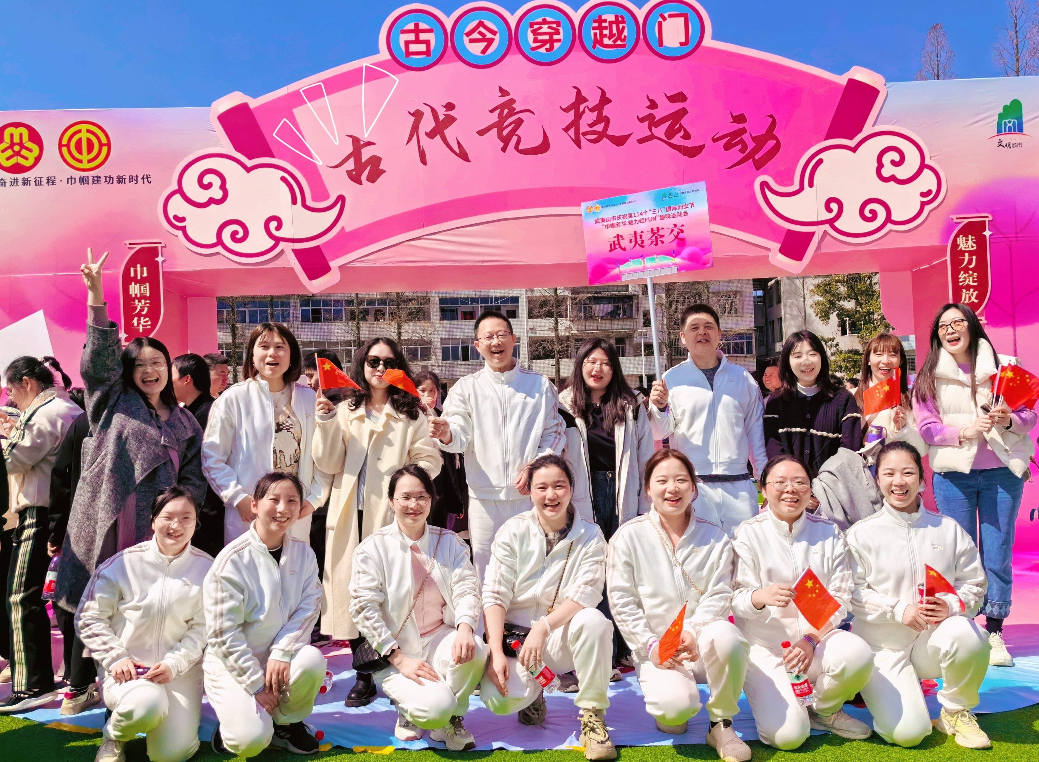 福建武夷国际茶叶交易中心组织员工参加武夷山市妇女节趣味运动会。活动包括投壶、蹴鞠、呼啦圈接力等项目,员工们热情参与,享受运动乐趣,增进团队情谊,充分展示武夷茶交干部职工健康活力、快乐向上的精神风貌。