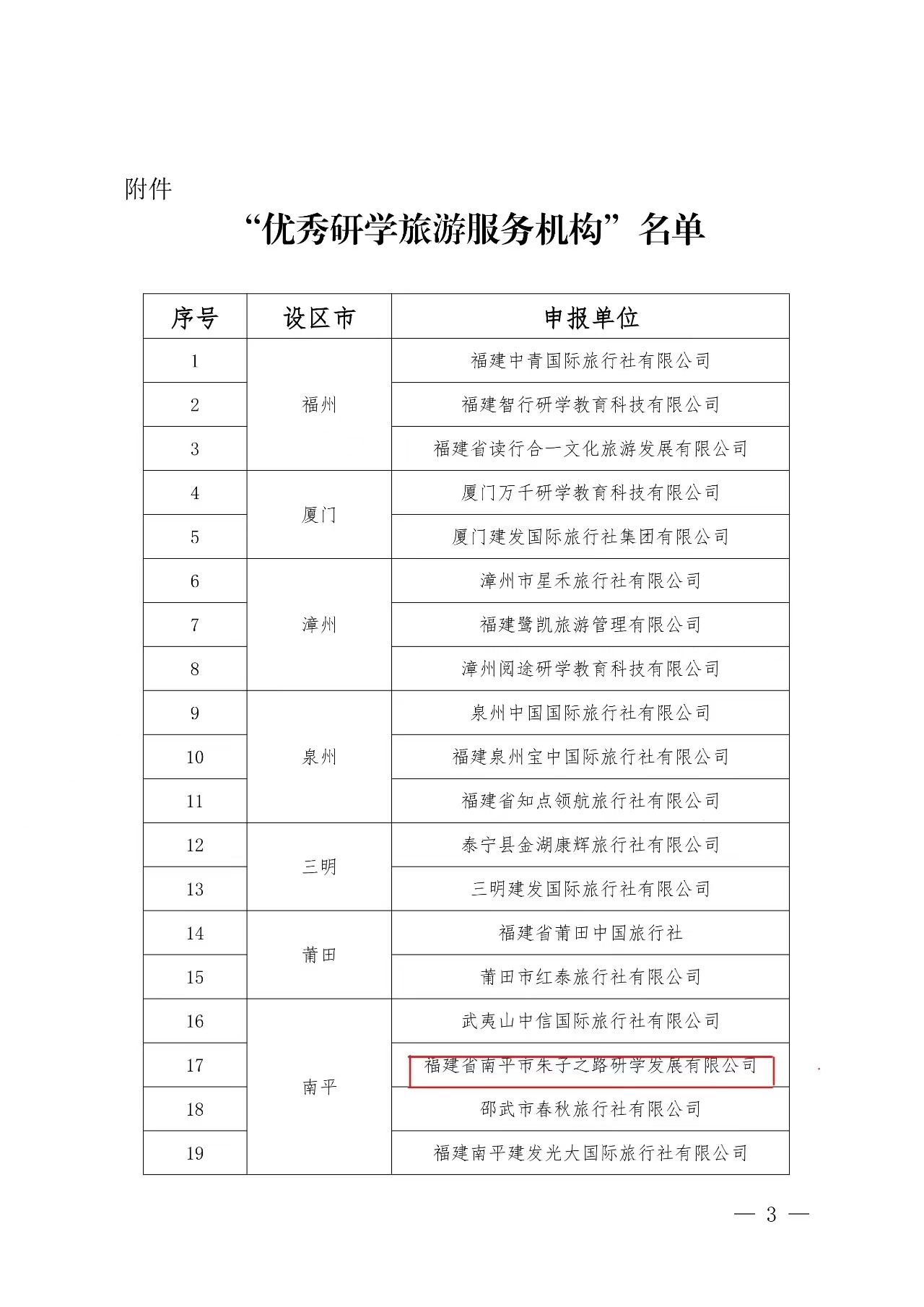 近日 福建省文化和旅游厅公布 关于“优秀研学旅游服务机构”评选结果 福建省南平市朱子之路研学发展有限公司 成功入选!