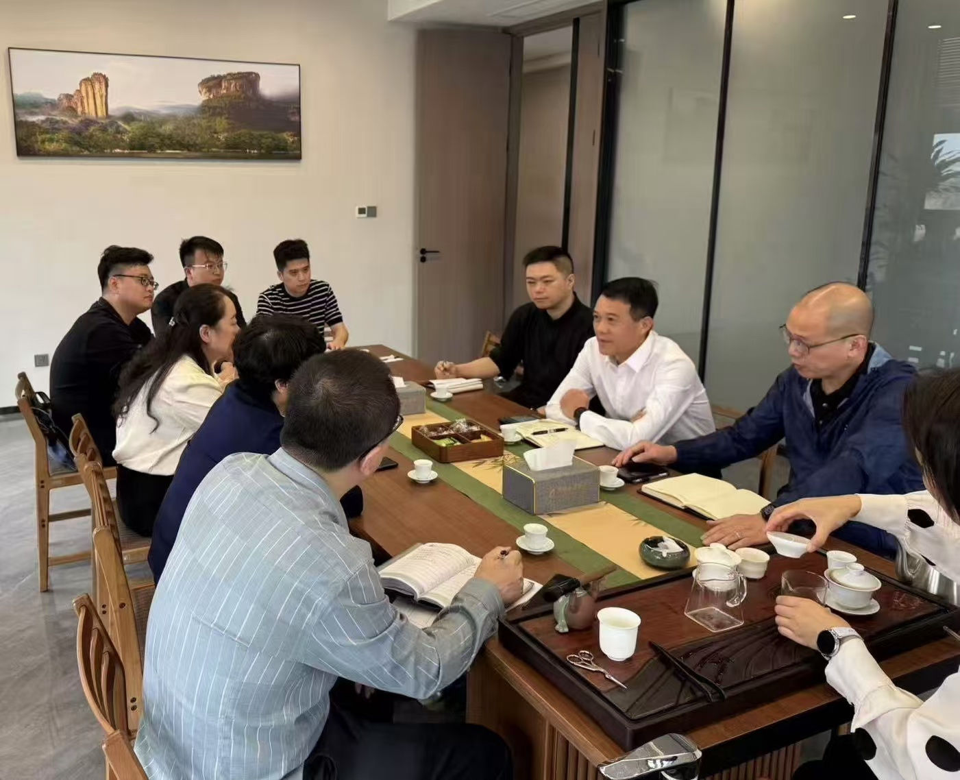 随后,林廷森总经理一行实地考察了武夷新区高新技术园区和建阳区童游工业园区,与集团党委书记、董事长叶厚德进一步座谈交流。双方表示,将深入挖掘各自资源潜力,持续深化合作领域,共同拓展市场空间,为闽北农产品的推广和两地农产品贸易的发展注入新动力,推动新时代山海协作不断取得新成效。